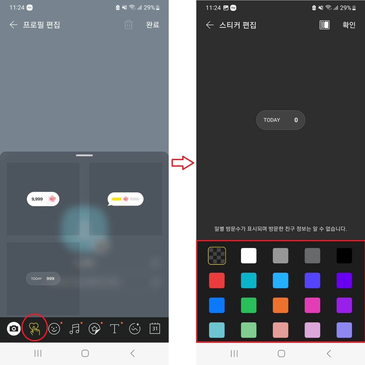 - 원하는 방문자 스티커 선택
